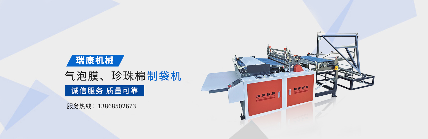 溫州瑞康機械有限公司(www_wzruikang_com.rybhpt.cn)主要生產氣泡膜機,快遞袋制袋機,包裝機,制袋機等設備。瑞康機械是國內生產塑料軟包裝系列機械設備的專業廠家之一。產品質量可靠、誠信服務,深受用戶好評,市場占有率節節攀升。